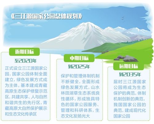 2018年1月17日,國家發展改革委對外公布《三江源國家公園總體規劃》,明確至2020年正式設立三江源國家公園;到2025年,保護和管理體制機制不斷健全,法規政策體系、標準體系趨于完善,管理運行有序高效;到2035年,保護和管理體制機制完善,行政管理范圍與生態系統相協調,實現對三江源自然生態系統的完整保護,建成現代化國家公園,成為我國國家公園的典范。(馬玉宏、得乾)