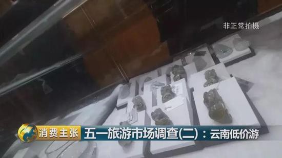 事實上,像剛才這種假冒富二代,然后再對珠寶玉石打折銷售的場景,是景區購物店的常見套路,央視財經頻道《消費主張》記者曾在云南、四川、北京的多個景區見識過這種套路,當然他們所推銷的金鑲玉、翡翠、黃龍玉,無一例外都是質次價高的產品。