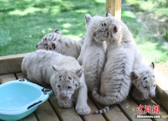 濟南野生動物世界雪虎五胞胎與游客見面
