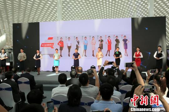 開(kāi)通儀式活動(dòng)現(xiàn)場(chǎng)深航空姐制服秀。 深圳航空供圖 攝