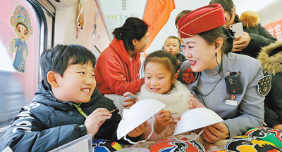 為弘揚傳統文化,北京西往返鄭州東G802次、G429次列車開展“繪臉譜、迎新年”活動,指導孩子們學習繪畫臉譜的技巧。