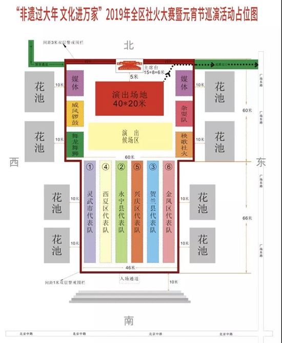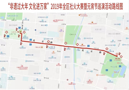 2019年寧夏社火大賽及元宵節巡演活動銀川主會場將于正月十五上午10點,在銀川市人民廣場正式啟動。通過遴選來自各縣(市)區的22支社火隊伍將從銀川市人民廣場出發,由西向東,沿人民廣場東路、北京東路、鳳凰北街行進,最終到達中山公園北門,巡演路線長約3.9公里。