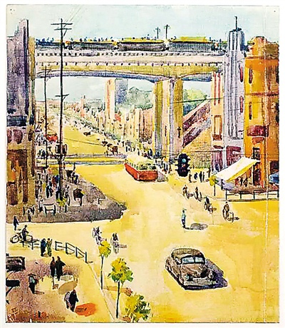 “記憶中的風景——湖北美術館館藏小幅繪畫作品展”水彩作品《武昌司門口》,作者嚴云開