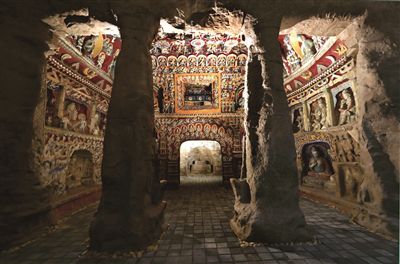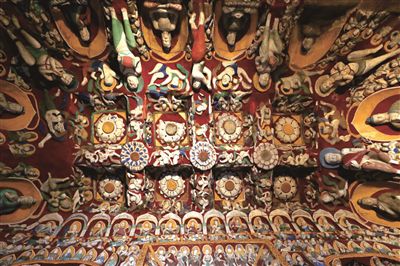 云岡石窟研究院美術工作團隊依照古法用礦物顏料為面積大約900多平方米的復制窟上色,歷經8個月的時間,終于讓12窟完成了其形色具足的復制,煥然呈現。
