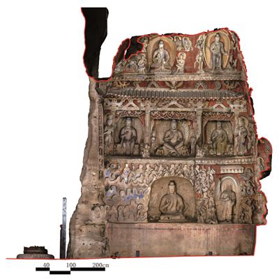 云岡12窟前室西壁正射影像圖,原真的形色信息記錄后的數字化測圖